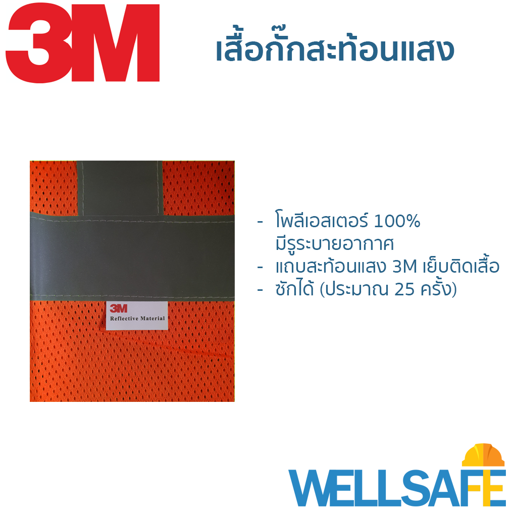 - ติดด้วยแถบสะท้อนแสงสีบรอนซ์เงิน 3M No.2925 Silver Reflective Material คาดบ่าทั้งสองด้านพร้อมรอบลำตัว