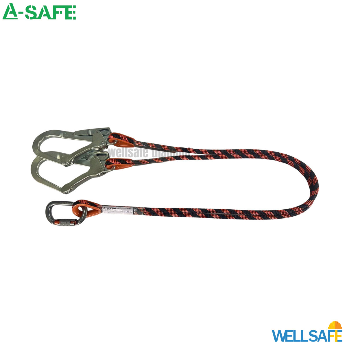 - เชือกนิรภัยกันตก 2 ตะขอ ชนิดโพลีเอสเตอร์ ขนาด 11 มม. ยาว 1.5 เมตร