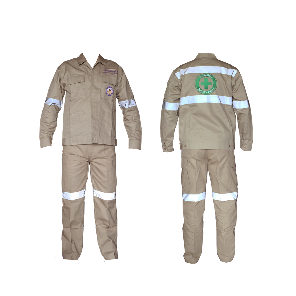ชุดทำงาน การไฟฟ้าส่วนภูมิภาค PEA ผ้า Cotton สีกากี คาดแถบสะท้อนแสง 3M